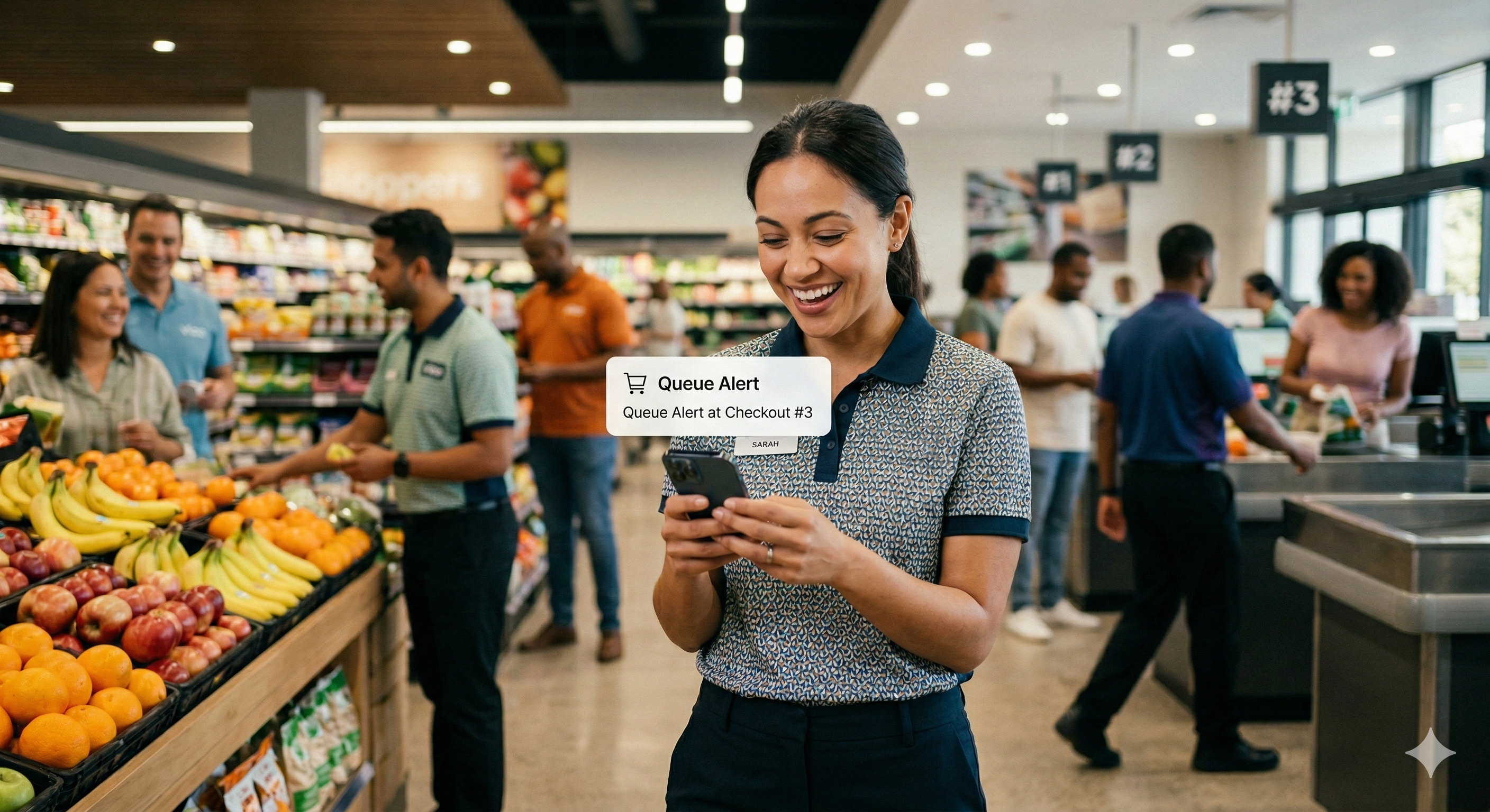 Store associates, department leads, and local security guards.